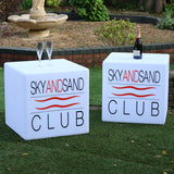 Premium rechargeable LED branded cube block from PK Green. Light up illuminated cube. Perfect for lounge, party, event.