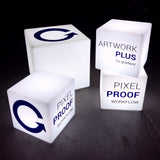 Premium rechargeable LED branded cube block from PK Green. Light up illuminated cube. Perfect for lounge, party, event.