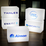 LED Light Box with Logo, Branded Furniture Seating Bench Stool, Custom Display Sign for Corporate Event Decor, Conference, Launch Party, Expo Stand