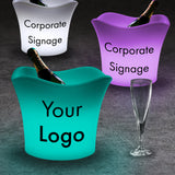 Our tabletop signage is reusable, so it can be used again and again at trade shows, exhibitions and corporate receptions. The LED ice bucket is a great centerpiece idea for company dinners.