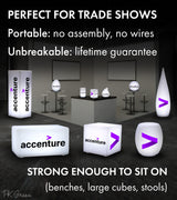 Our branded centerpieces are perfect for your corporate event, conference or trade show. They are ready to use out of the box, so you can focus on your event and not worry about setup.
